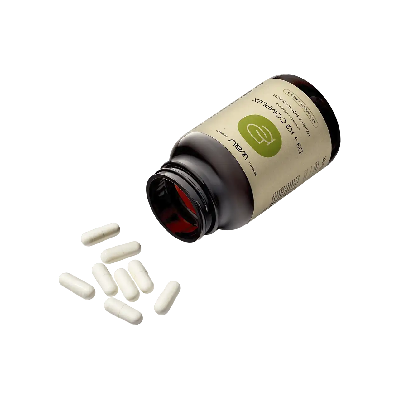 Витамин D3 и K2 работают в синергии, усиливая действие друг друга. Витамин D3 способствует усвоению кальция, а витамин K2 направляет его в кости и зубы, предотвращая отложение кальция в сосудах и почках