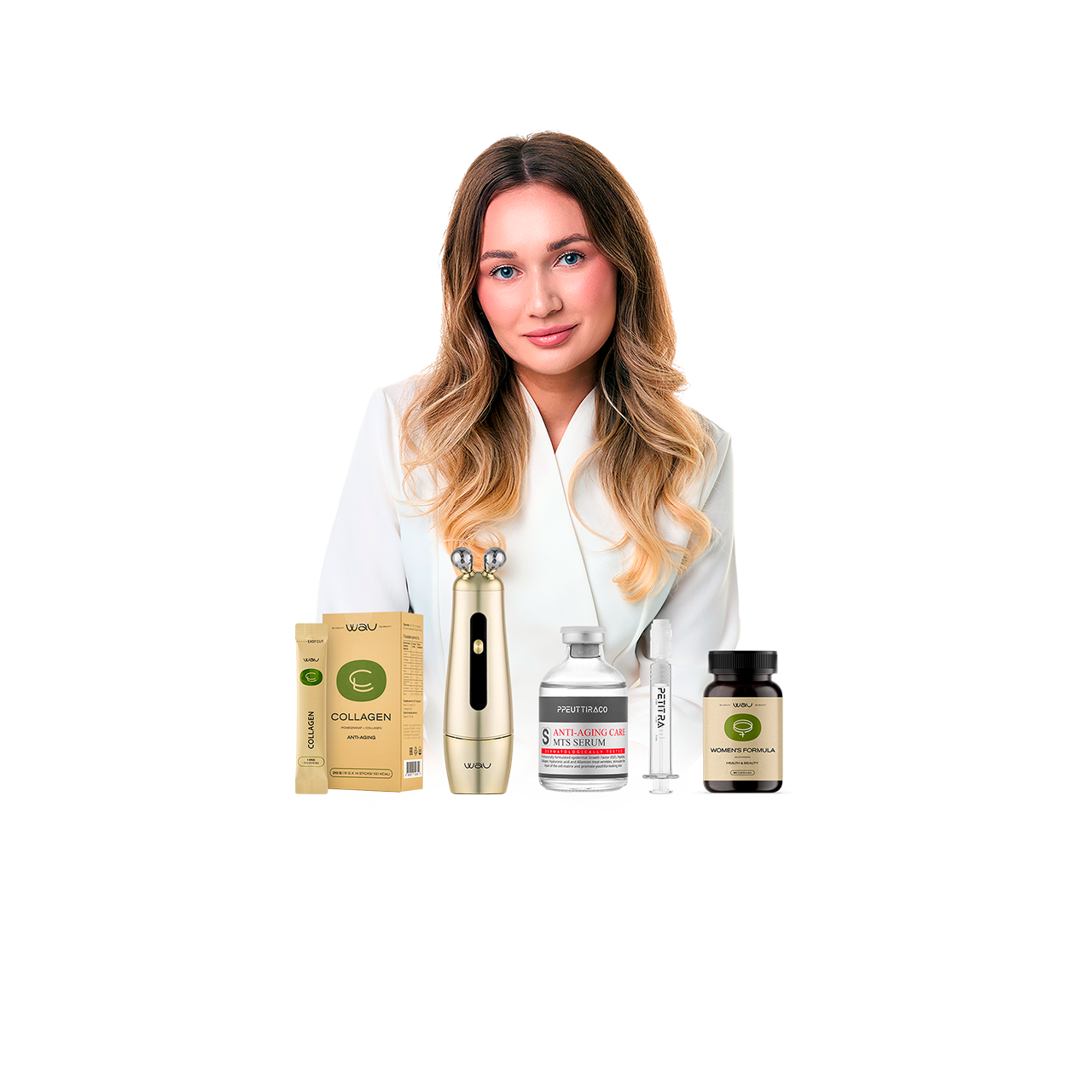 Подарочный бокс от практикующего врача-косметолога — многоуровневая стратегия против возрастных изменений. Комплекс создан Мартой Гатауллиной для комплексного воздействия на упругость, тонус и сияние кожи изнутри и снаружи. Он объединяет аппарат с тремя технологиями, интенсивную пептидную сыворотку, строительный материал для молодости и сбалансированную внутреннюю поддержку женского организма.