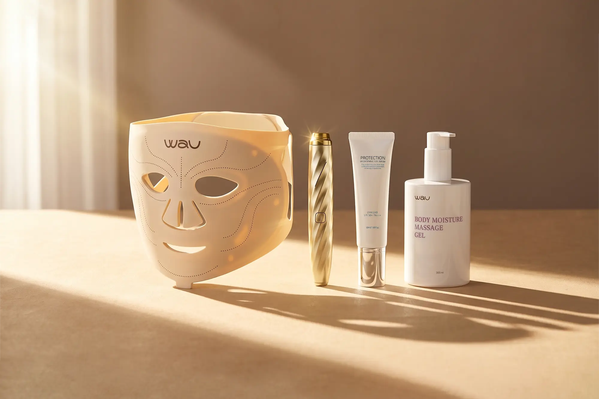 Набор объединяет всё для полноценного ухода: от общего преображения до точечной коррекции. LED-маска улучшает состояние кожи световой терапией, а компактный девайс AI NEW целенаправленно работает с областью вокруг глаз. Процедуры усиливает увлажняющий гель, а лёгкая сыворотка с SPF 50 завершает ритуал, обеспечивая защиту