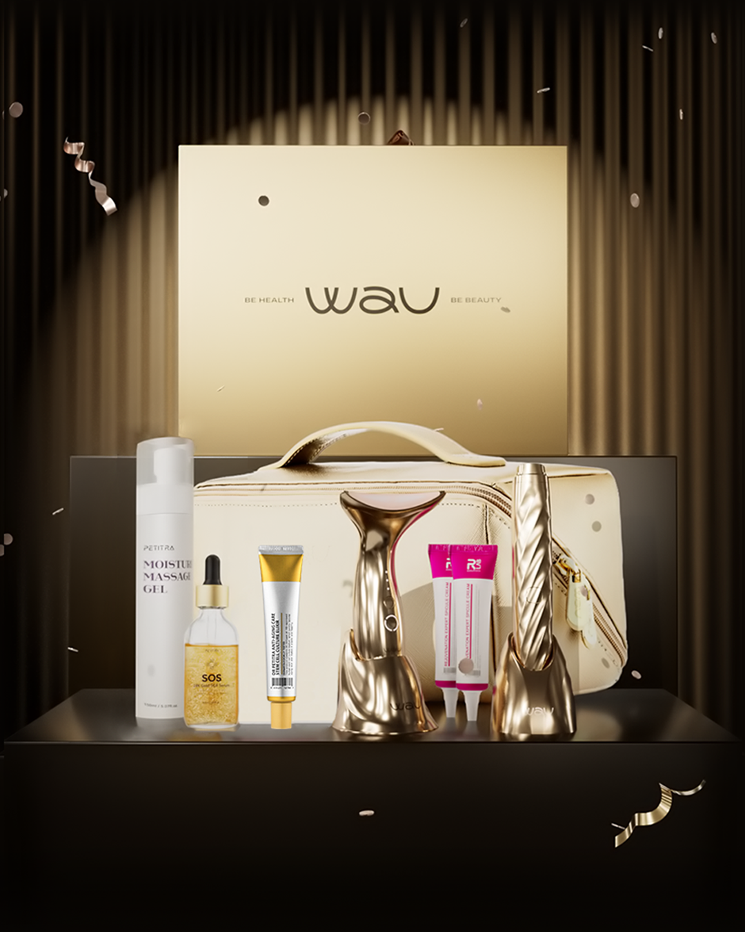 Подарочный бокс с готовым решением для профессионального ухода за кожей. Многофункциональный массажер MAMI с микротоками и LED-терапией подтягивает контур лица и разглаживает морщины, а компактный аппарат AI NEW целенаправленно ухаживает за деликатной зоной вокруг глаз, уменьшая темные круги и отечность. В сочетании с косметикой набор обеспечивает комплексное омоложение, а стильная косметичка позволяет удобно хранить все аксессуары для ежедневного ритуала красоты