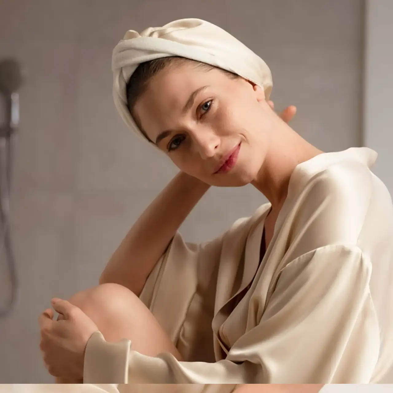 Внутренний слой из 100% бамбукового волокна бережно впитывает лишнюю влагу и ухаживает за волосами. Внешний слой из натурального шелка придает им блеск и гладкость