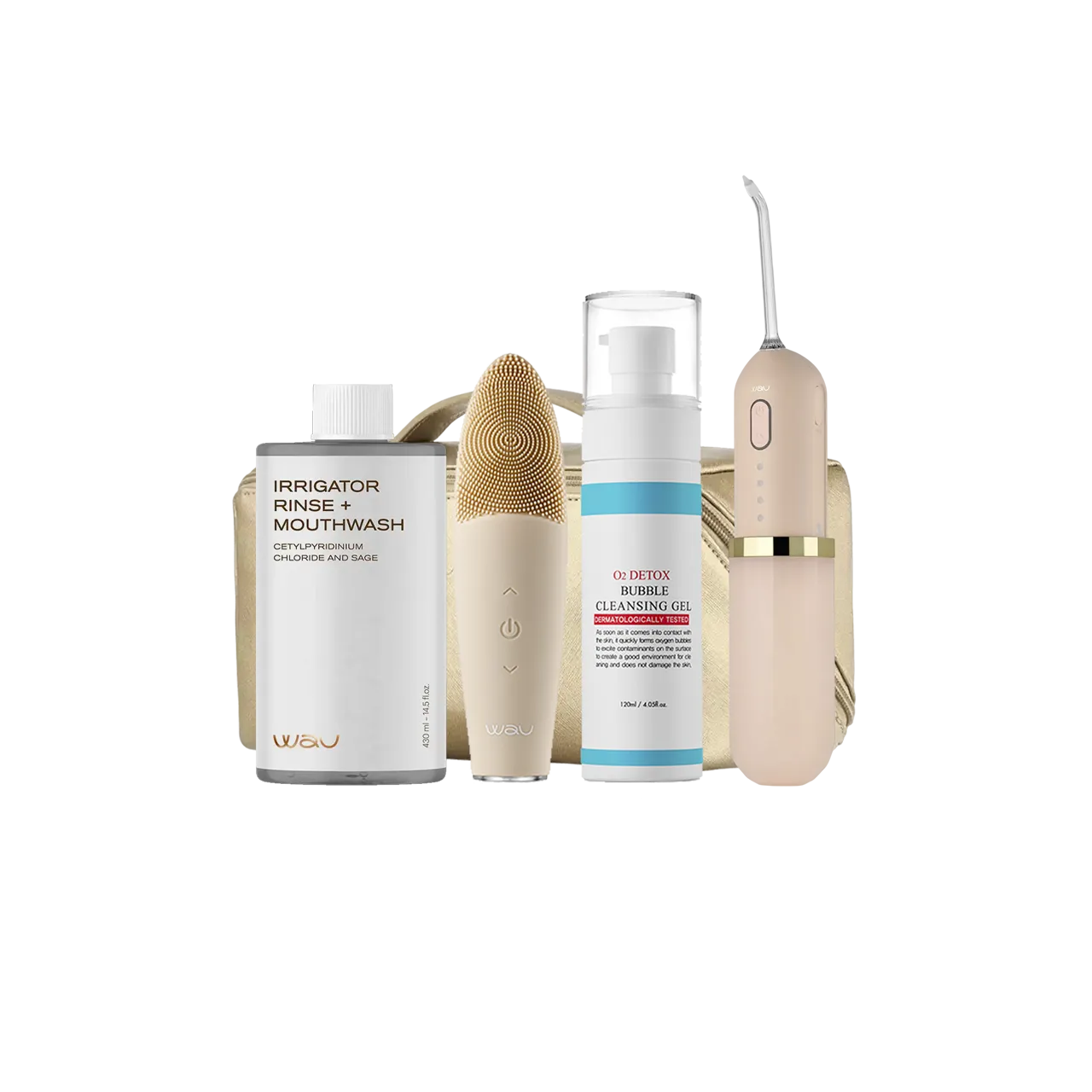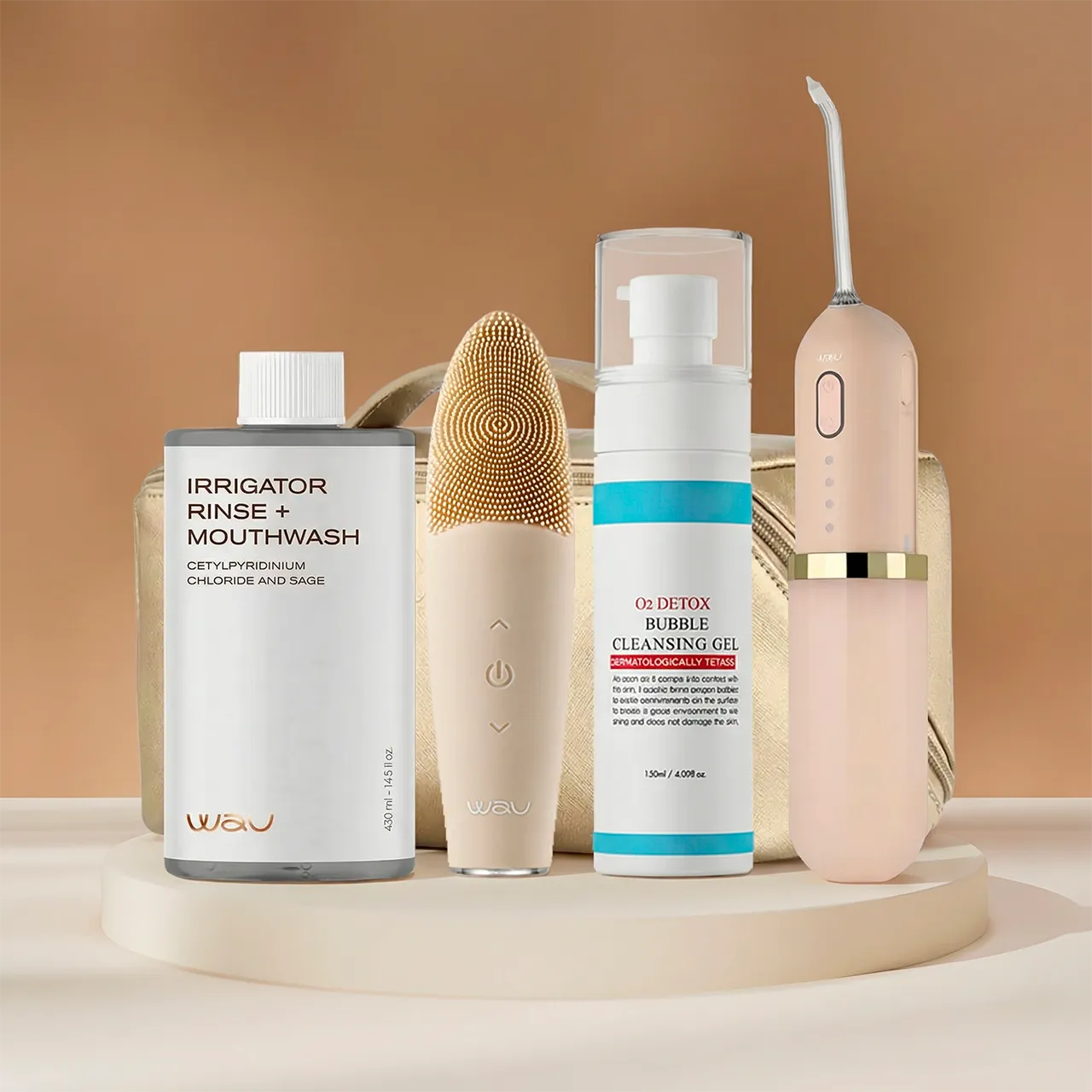 Готовый сценарий вашего утра, где высокие технологии встречаются с эстетикой. Мы объединили прогрессивные девайсы для здоровья улыбки и сияния кожи в одной системе. Каждый элемент набора работает на результат: от глубокого звукового очищения до профессиональной детоксикации. Завершает концепцию золотой кейс, который превращает хранение девайсов в визуальное удовольствие.