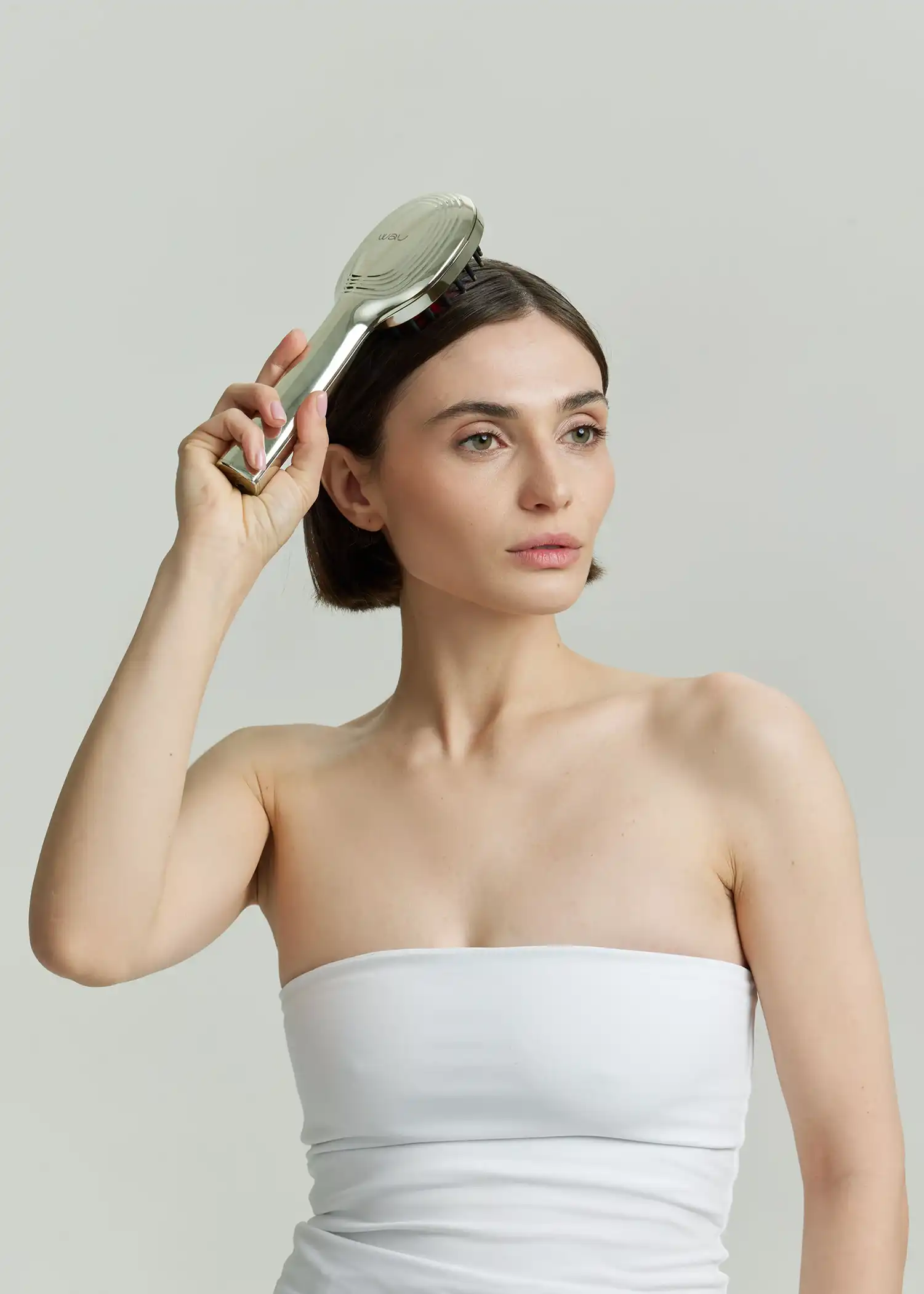 - 3 режима работы: EMS, LED (фототерапия), вибрация — для комплексного ухода за кожей головы.